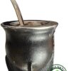 Mate camionero 100% calabaza virola de acero lisa (negro)