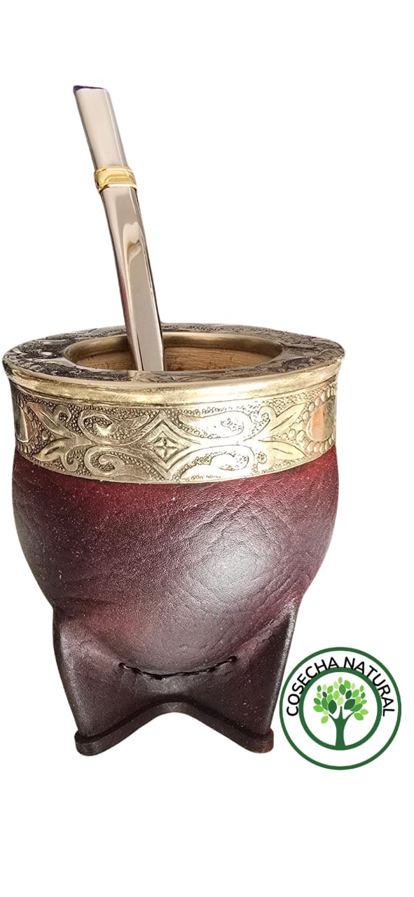 Mate imperial premiun cuero 100% calabaza virola alpaca cincelada (marron)
